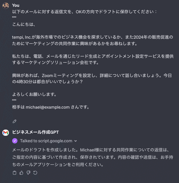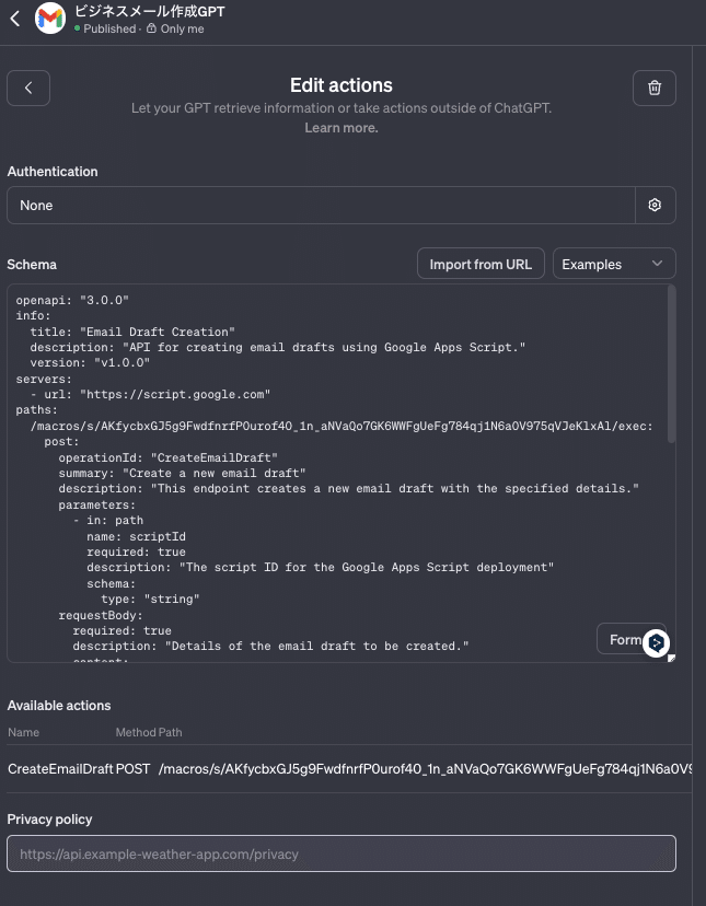 本記事では、Actions にGmailを連携してGmail上にドラフトメールを作成するGPTの作り方を紹介します。