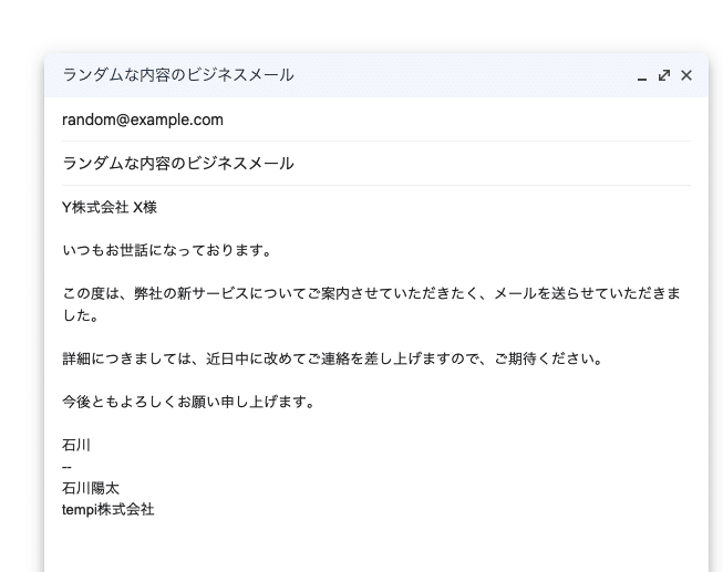 - もし先方の情報があれば「Y株式会社 X様」で始めてください。「いつもお世話になっております」など入れてください。
