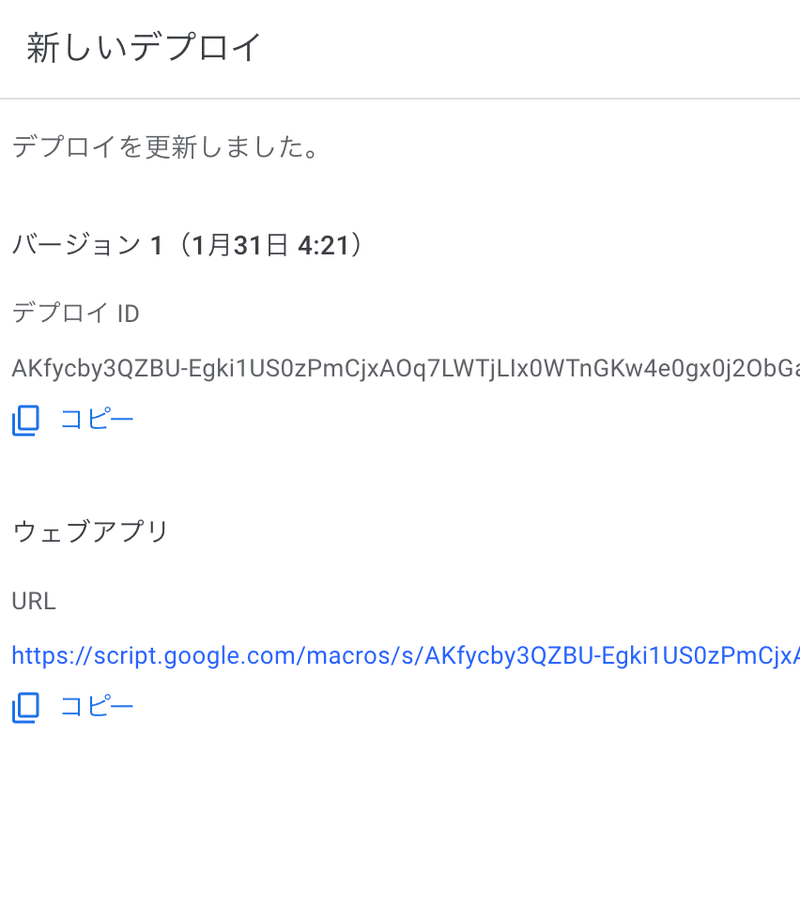 デプロイが完了すると、URL が発行されるため、この URL をコピーしておきます。