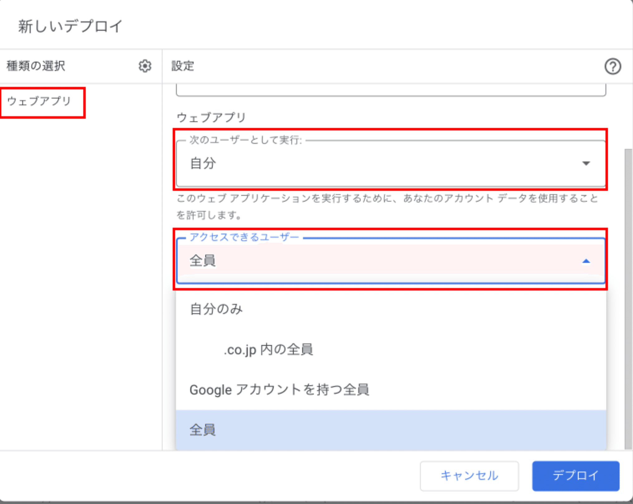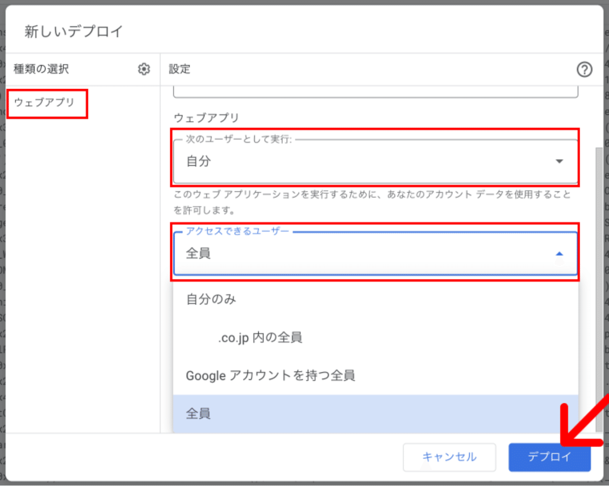 • 右下の「デプロイ」 をクリックします