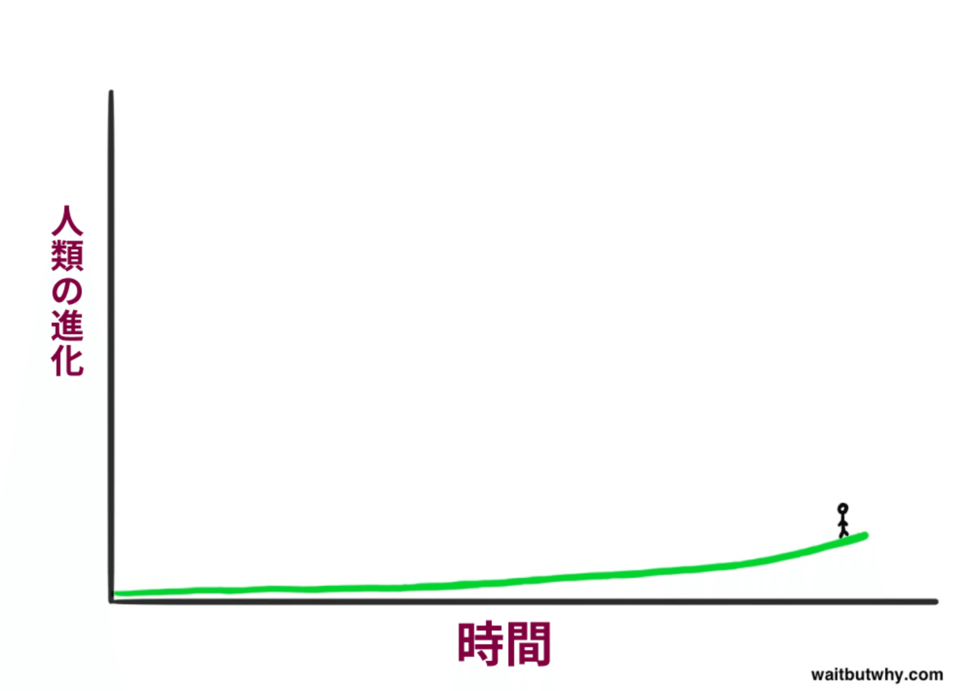 このパターン、つまり時間の経過とともに人類の進歩がどんどん速くなっていくことを、未来学者のレイ・カーツワイルは人類史の「加速する変化の法則」と呼んでいます。これは、より進んだ社会の方が、より進んでいない社会よりも速いペースで進歩する能力があるからです。19世紀の人類は15世紀の人類よりも知識があり、技術も優れていたので、19世紀の人類が15世紀よりもはるかに多くの進歩を遂げたのは当然のことです。15世紀の人類は19世紀の人類の敵ではありませんでした。