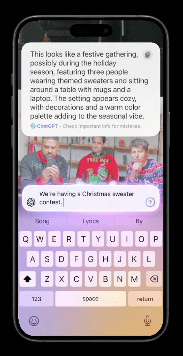 iPhone 16シリーズのカメラ機能(Camera Control)を通じて撮影映像を解析し、ChatGPTから関連情報を取得。