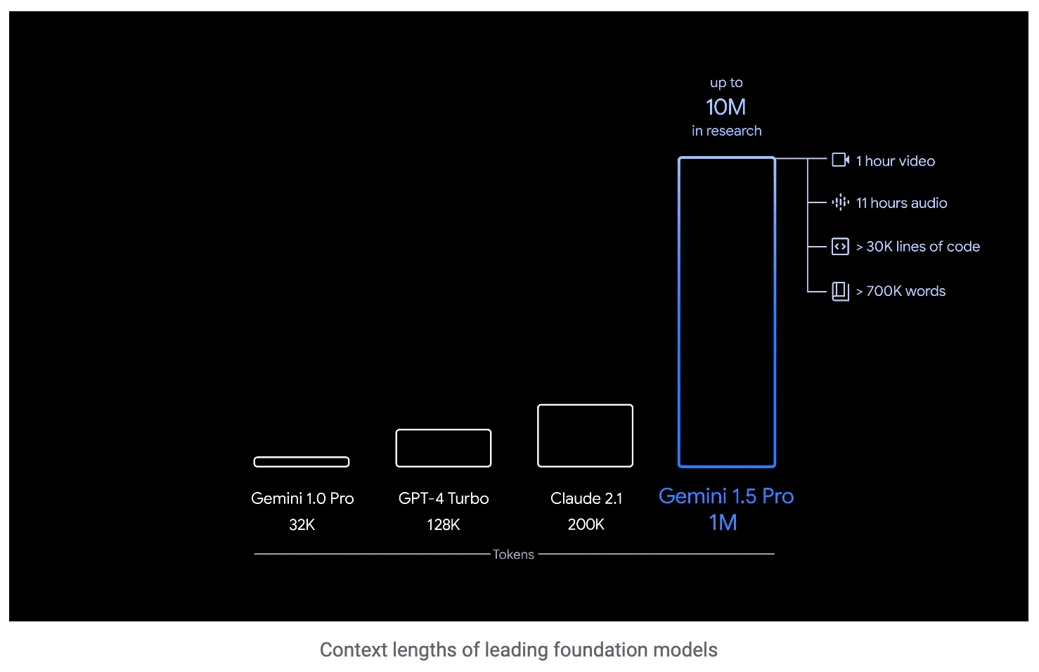 これは1時間の動画、11時間の音声、3万行以上のコード、70万語以上のテキストに相当します。研究では、さらに1000万トークンでの処理にも成功しているとのことです。