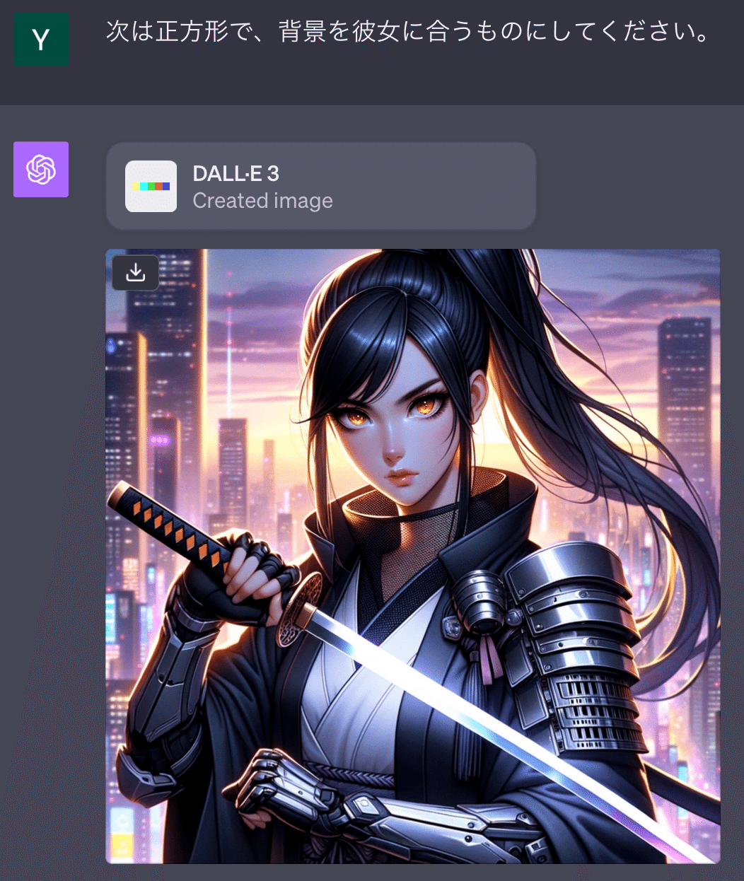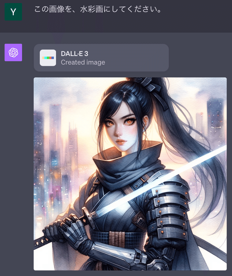 DALL·E 3 で最も革新的だったと言えるのが、ChatGPTのコンテキストを保持して、出力画像に対する自然なフィードバックができることです。