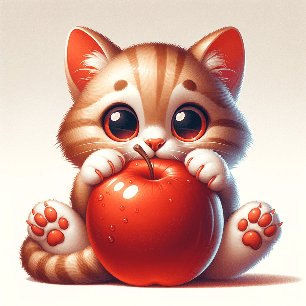例えば、「赤いリンゴを持った猫を出して」と入力すると、以下のような画像が生成されます。