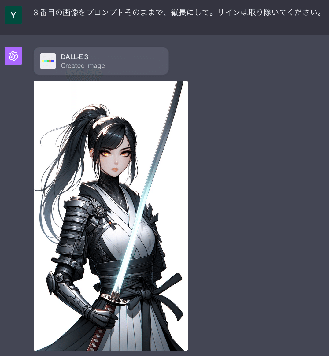 DALL·E 3では、「1:1(正方形)」、「16:9(横長)」、「9:16(縦長)」の3つのアスペクト比に対応しています。指定方法は「縦長にして」などのシンプルなプロンプトでOKです。