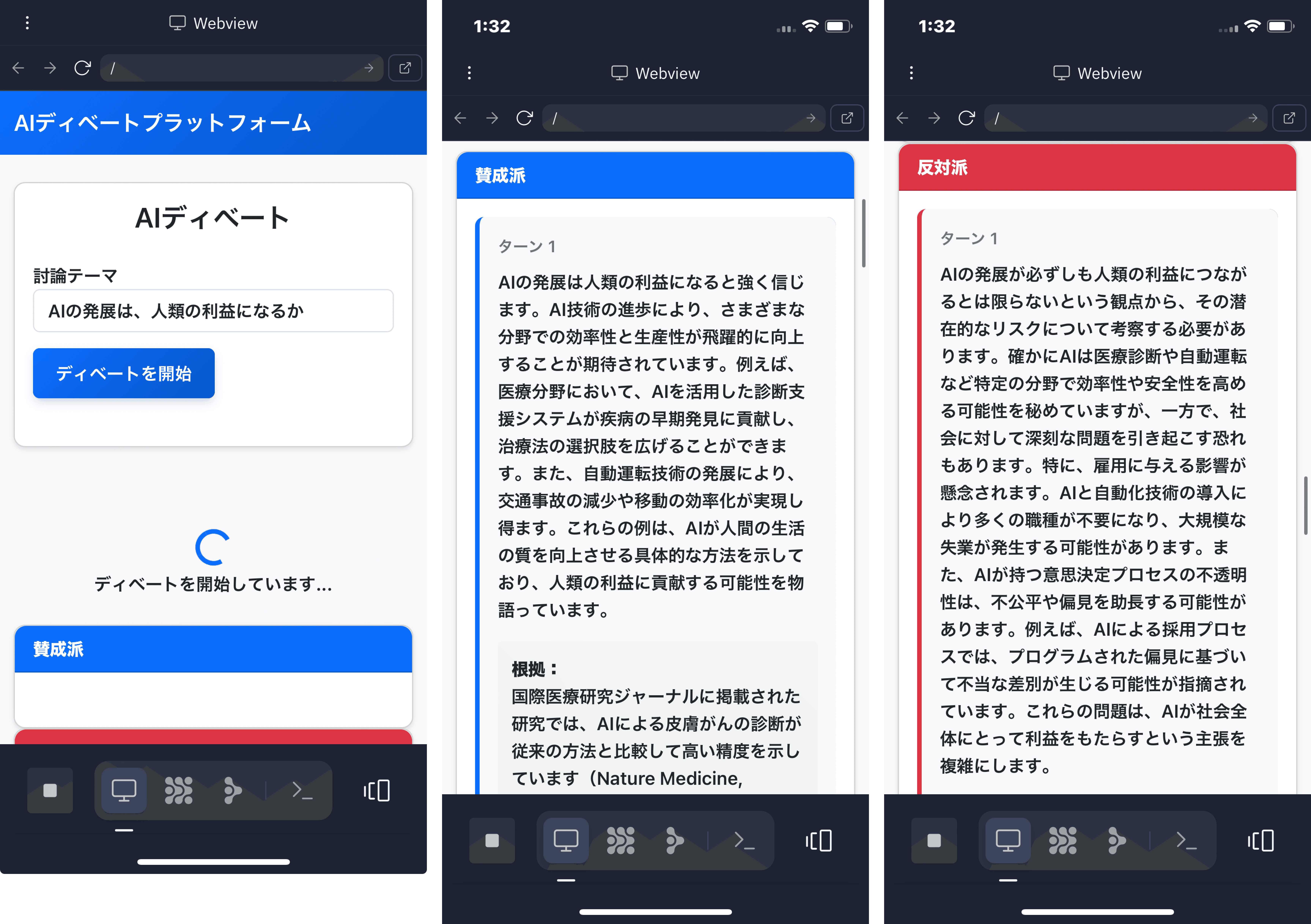 *本記事の後半では、このモバイル版を活用してAI同士が討論するアプリを開発する手順を、実際の流れに沿って解説します。