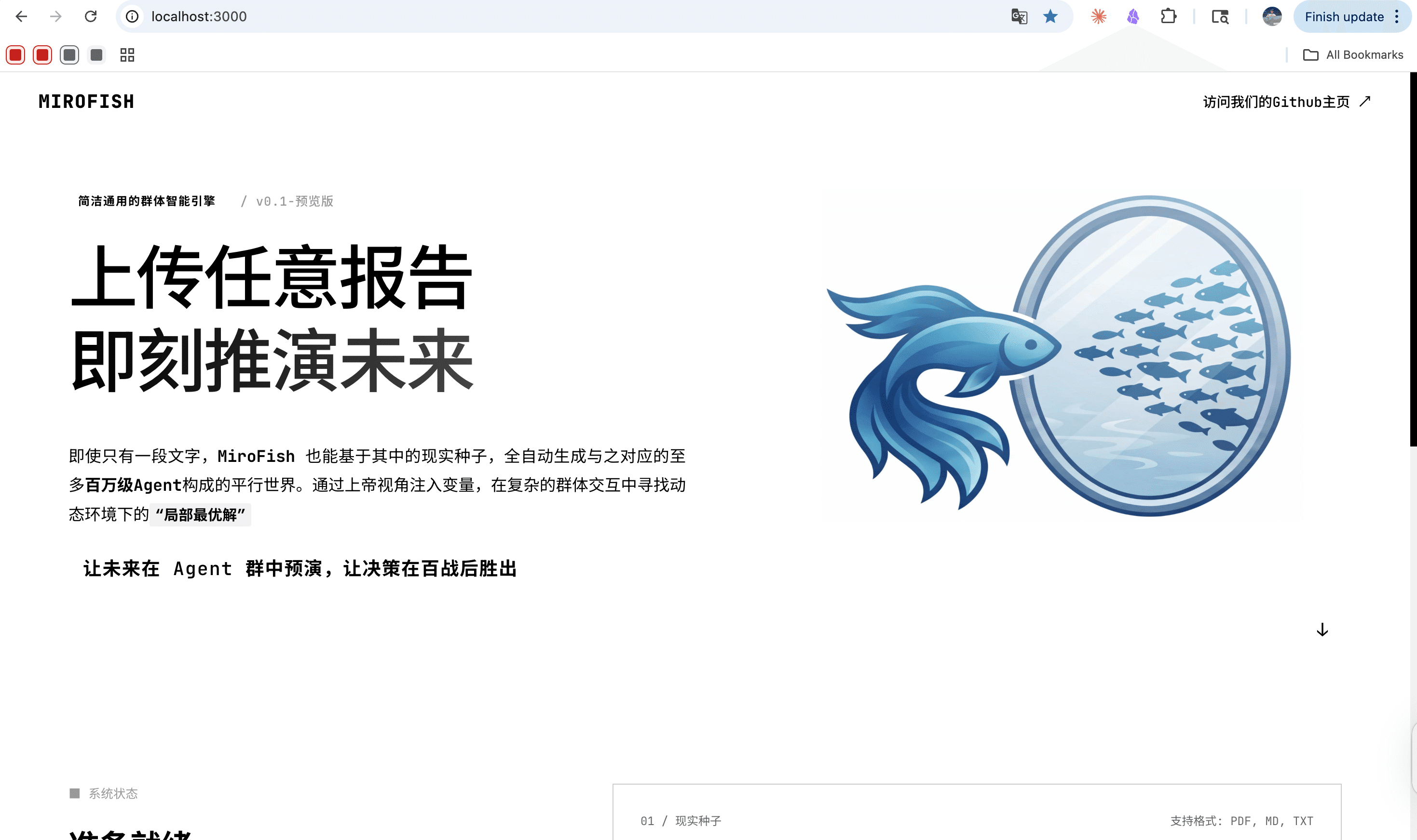 MiroFish は、現実世界の情報から高忠実度のデジタル並行世界を構築し、AIエージェントたちに社会シミュレーションを行わせる予測エンジンです。