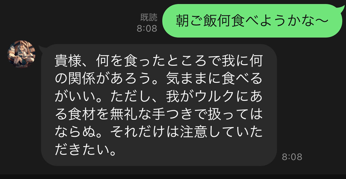 実は、上記の ChatGPT に人格を与えることが簡単にできます。