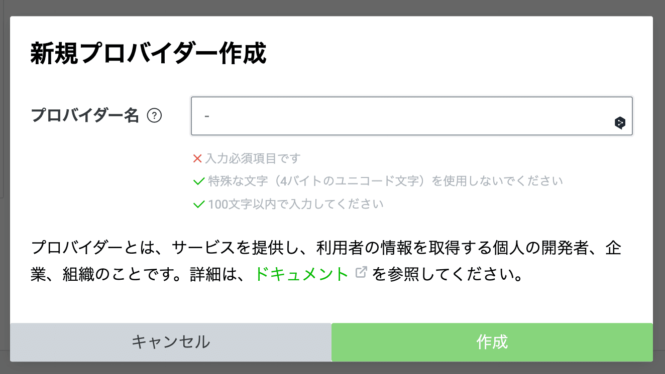 登録が完了したら、プロバイダー名はなんでもいいので、新規プロバイダーを作成します。