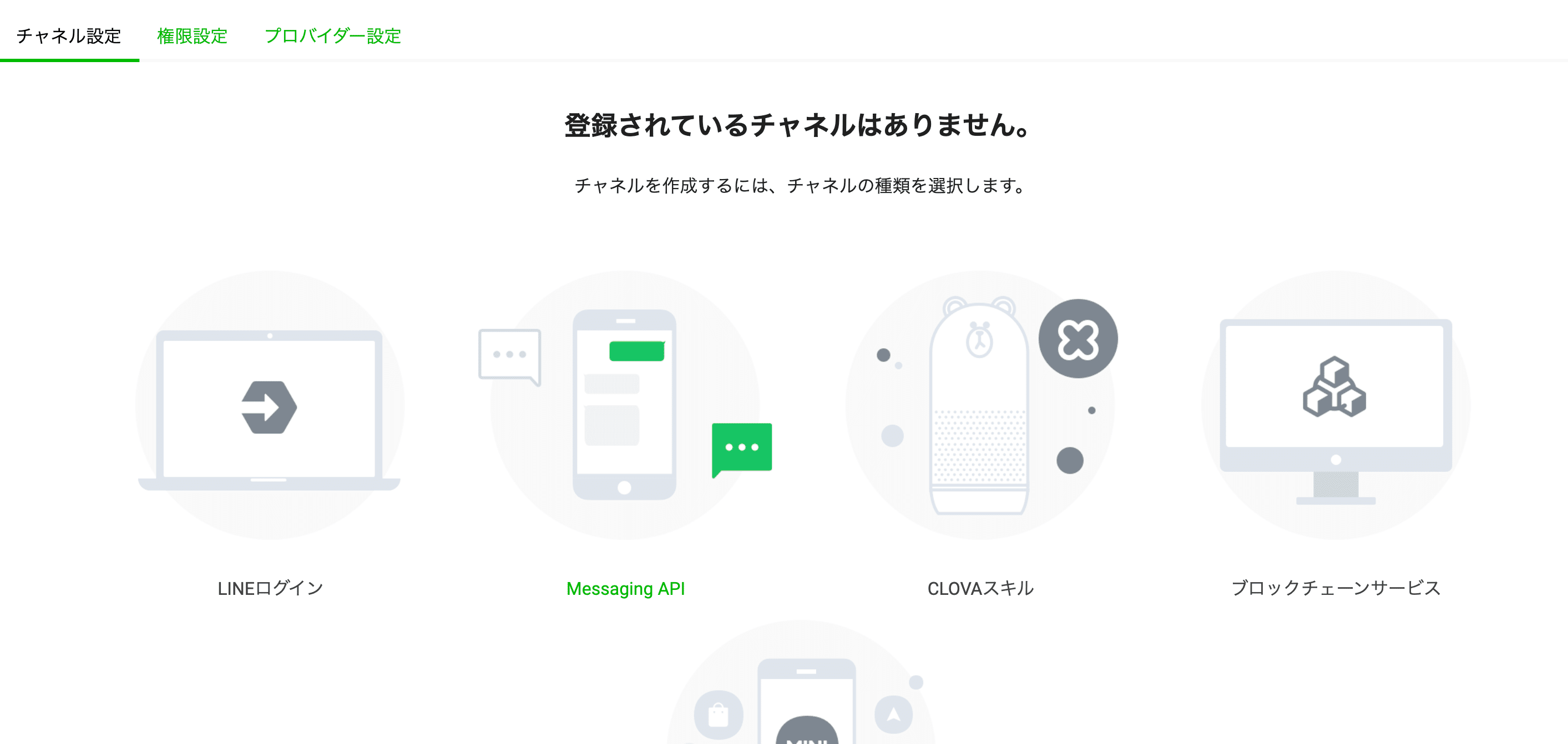 次にチャネルを作成します。Messaging API を選択します。