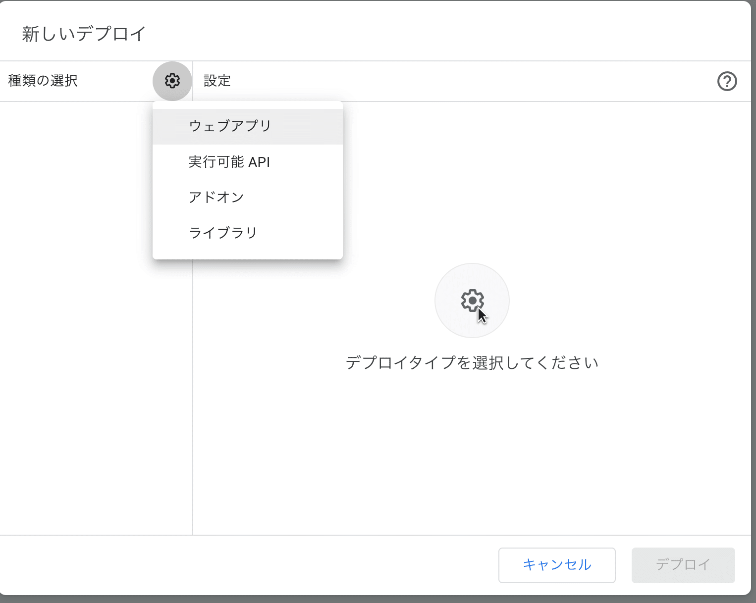 デプロイタイプをウェブアプリに設定します。