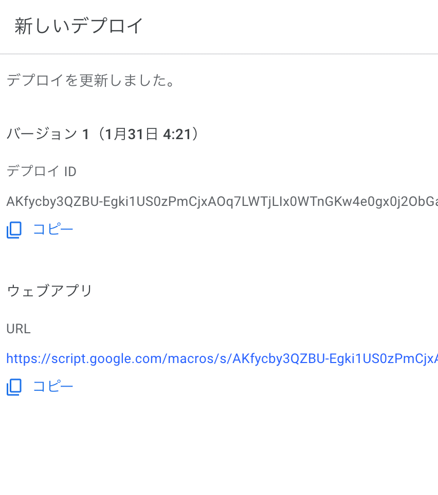 デプロイが完了すると、URL が発行されるため、この URL をコピーします。