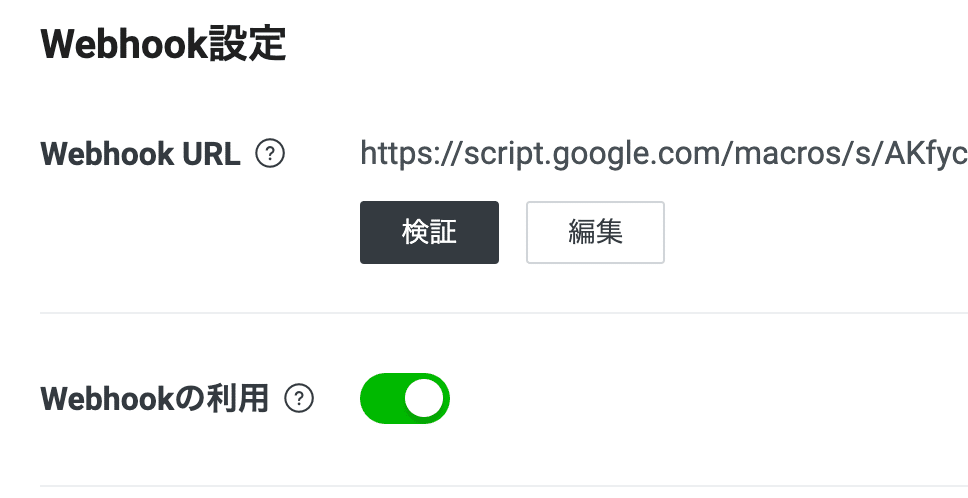 Line の方に戻って、この URL を以下の. Webhook URLの部分に設定します。続いて Webhook の利用のトグルをオンにします。