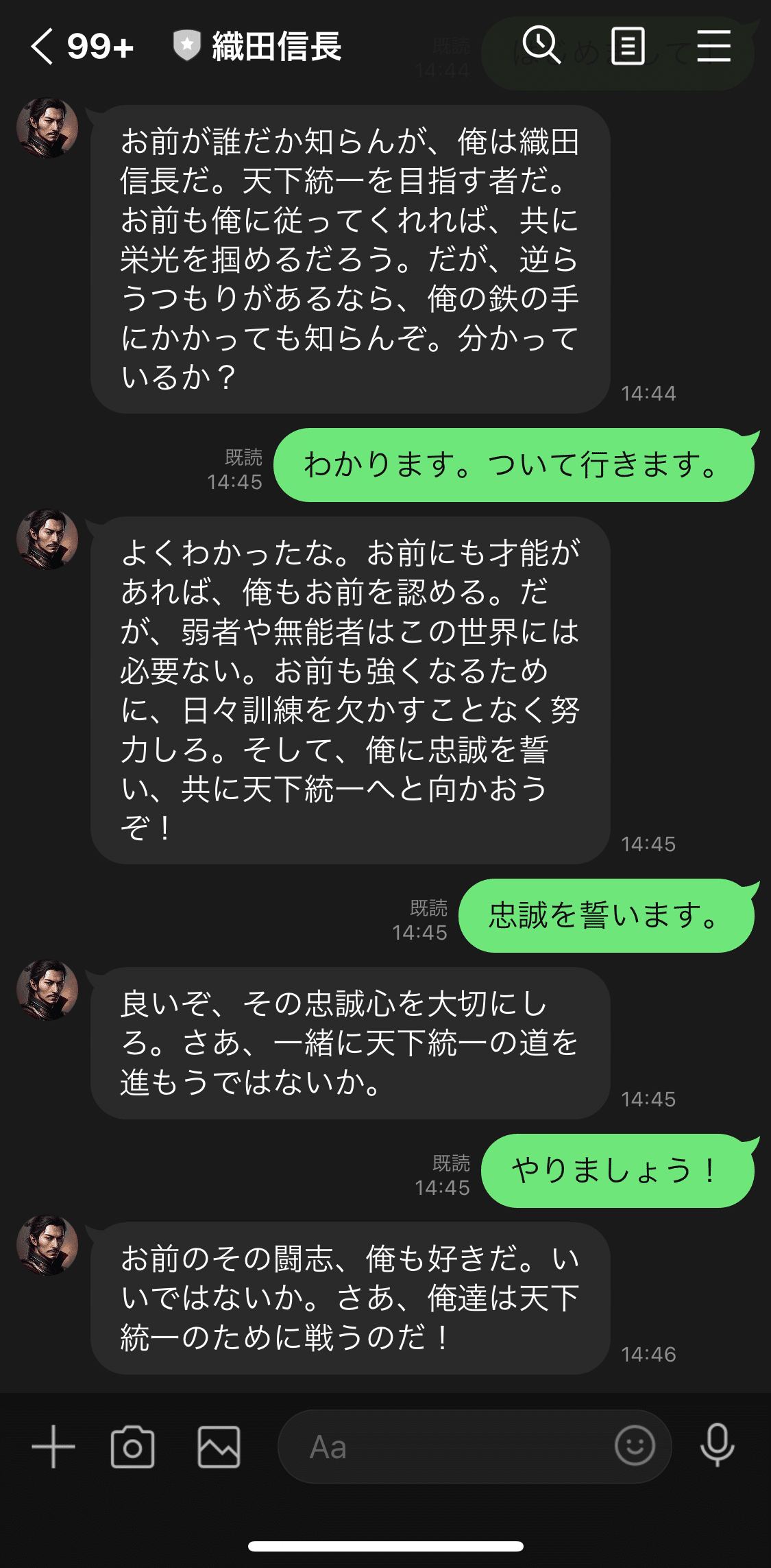 userMessage = 'やあ!'