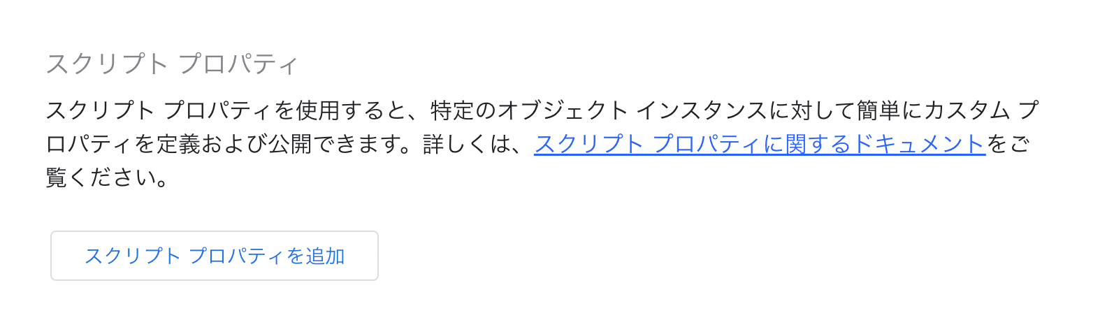 この画面の一番下に、スクリプトプロパティを追加というボタンがあるため、ここをクリックして、各種パラメータを設定します。
