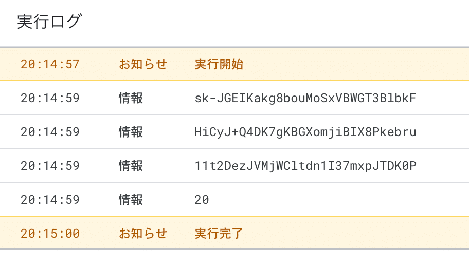 実行ログが以下のようになっていれば成功です。
