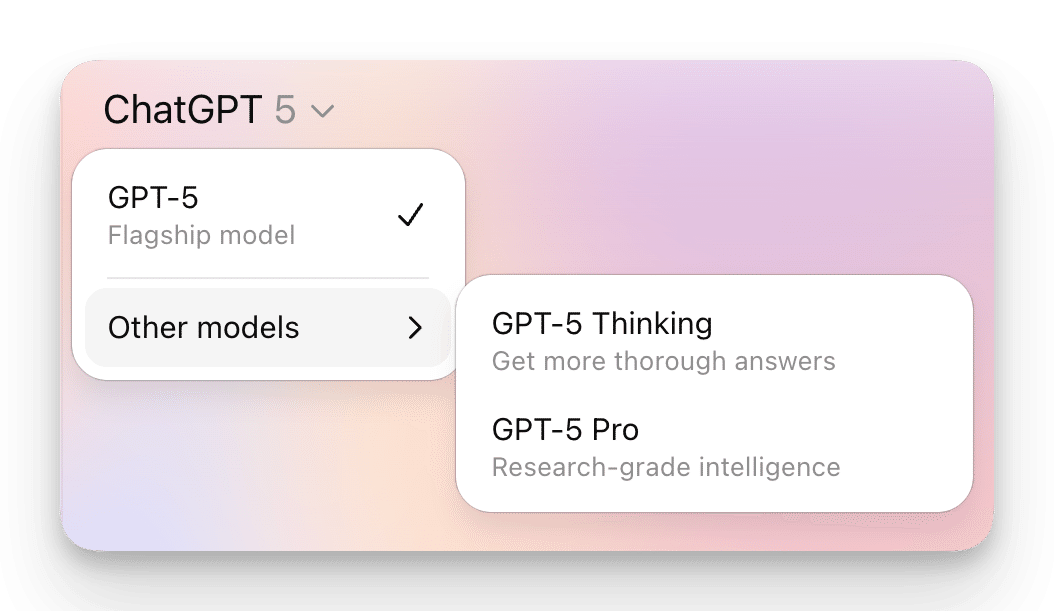 ChatGPTの既定モデルはGPT‑5に統一され、すでにAPIでも提供が始まっています。