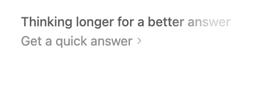 切り替え中はReasoningビューに進捗が表示され、待たずに[Get a quick answer]を押すと即時回答へ戻すことができます。