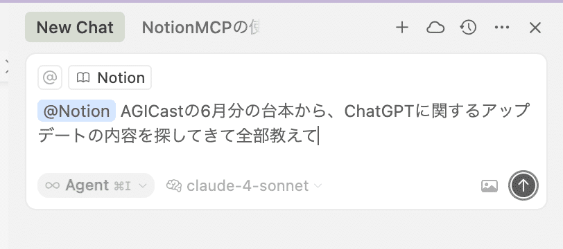 Notion MCPはCusorに情報をインプットするだけでなく、Cusor上からNotion操作を実行することができます。