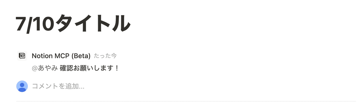 作成できたコメントは「Notion MCP」のコメントとしてページに追加されます。