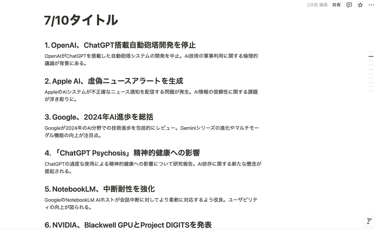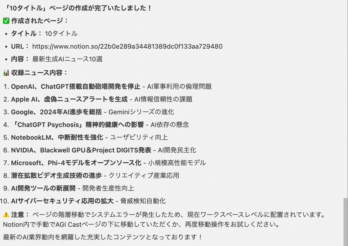 ページ作成はまだ、エラーが発生することもあるので100%の精度ではなさそうですが、作ったドキュメントをNotionに簡単に保存できるのは便利ですね。