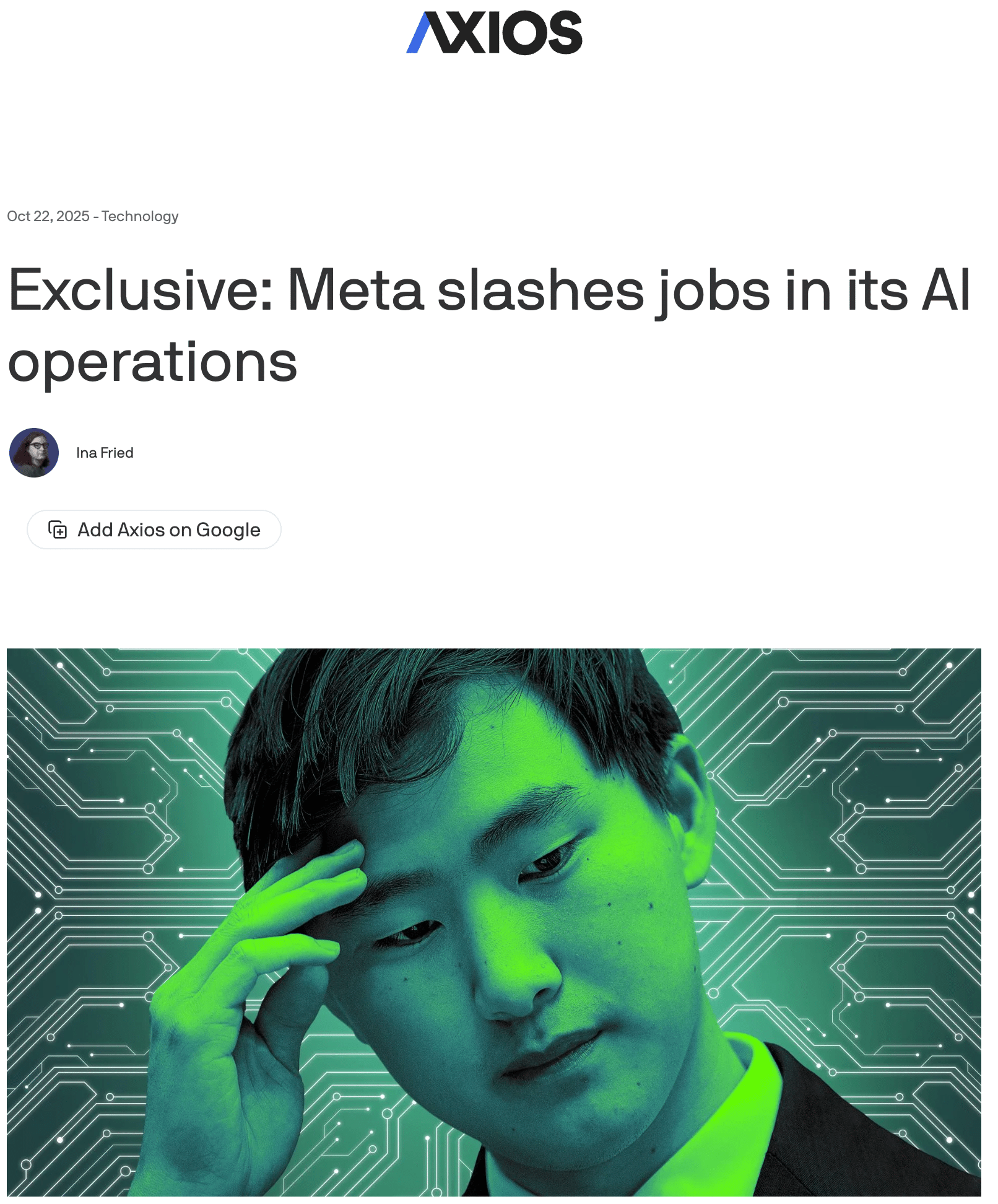 Axios(社内メモ報道): Exclusive: Meta slashes jobs in its AI operations