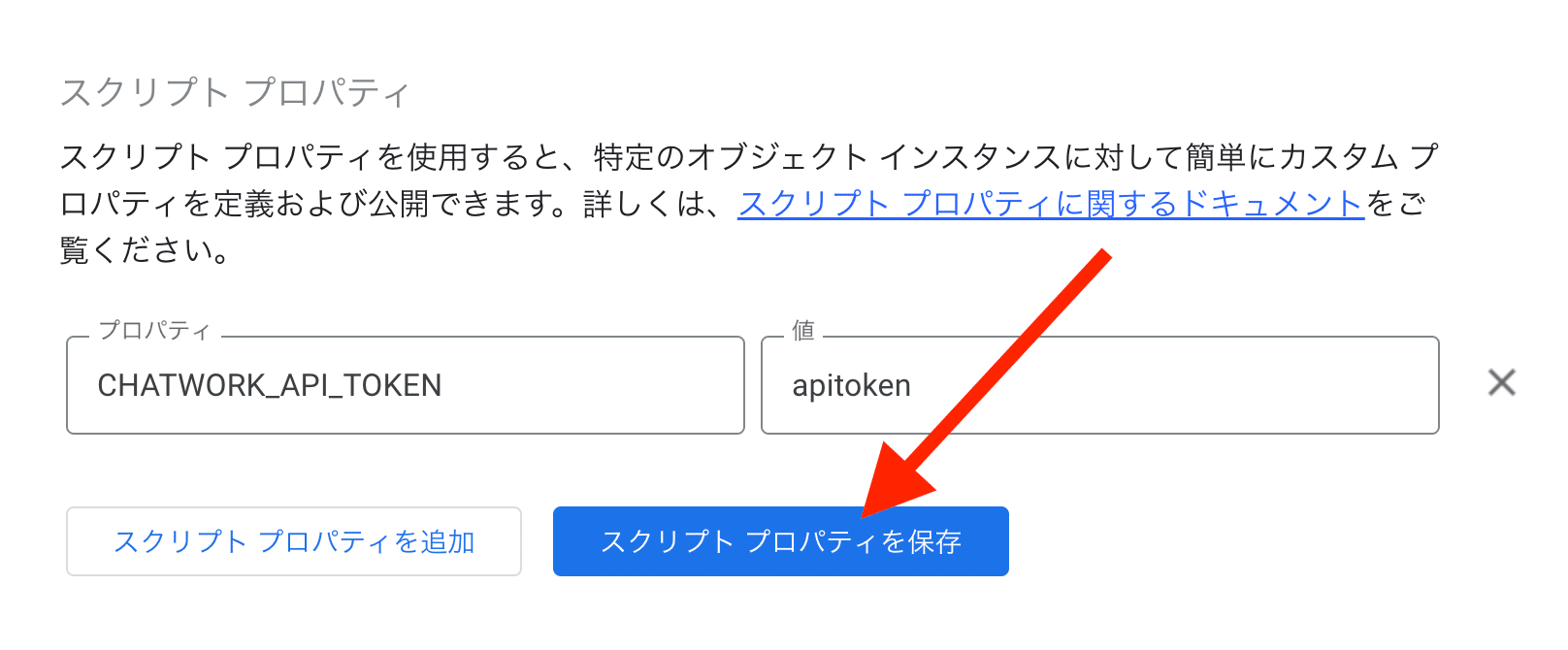 入力したら、「スクリプト プロパティを保存」をクリックします。