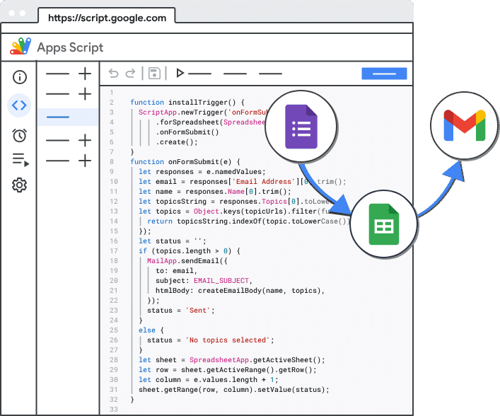 GASは、GmailやスプレッドシートといったGoogleのサービスを、プログラムで自由に操作するための開発環境です。