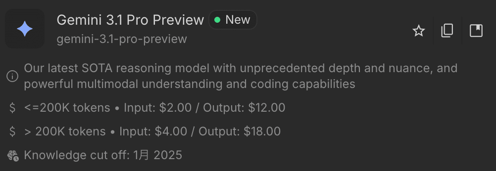 Gemini 3.1 Pro: 入力 $2.00 / 出力 $12.00