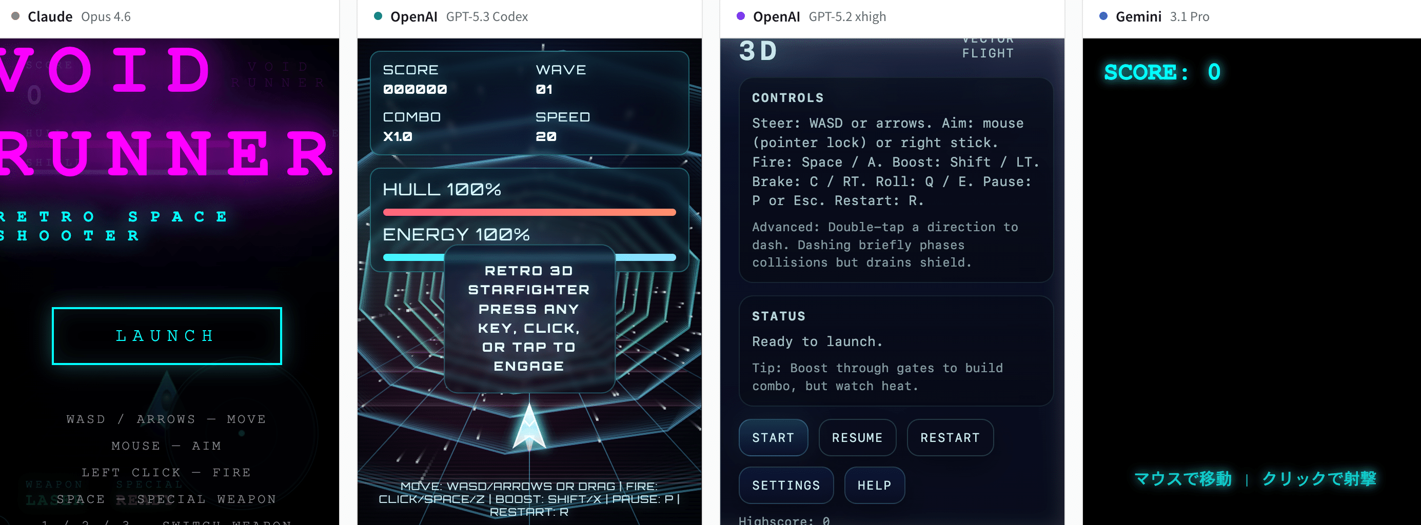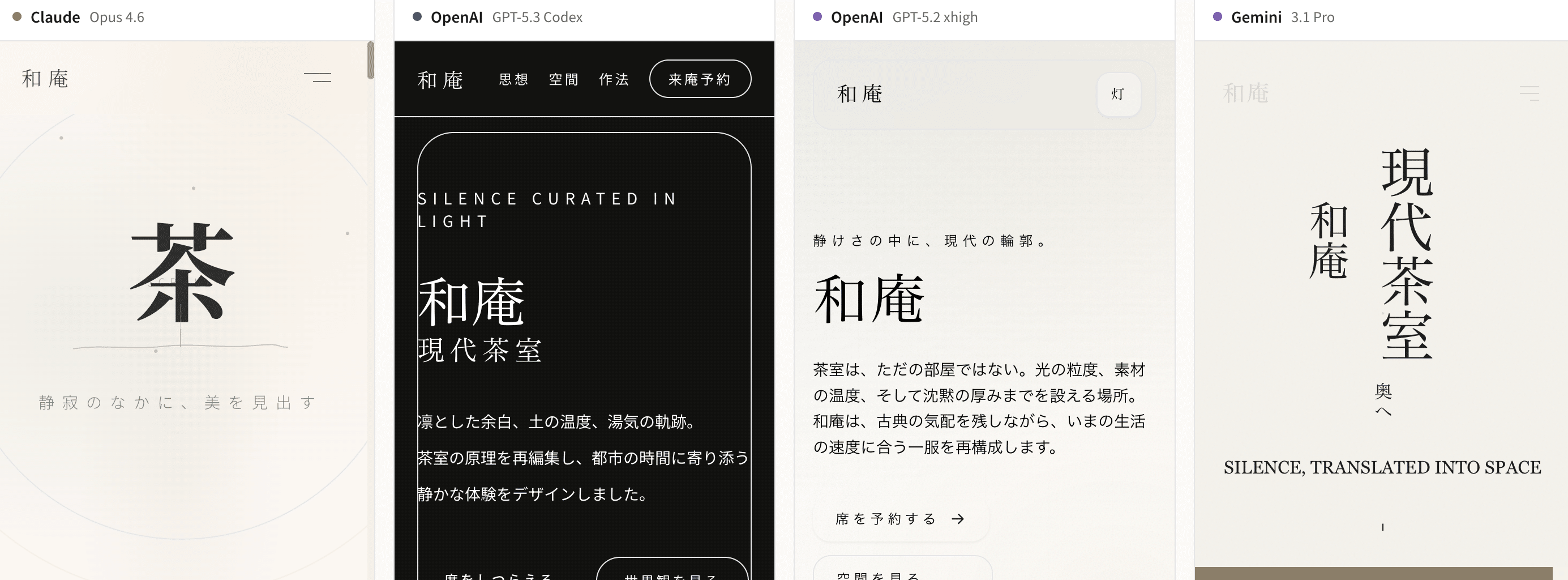 比較ページ: 4モデルの全出力を並べて確認できます → VibeCheck比較ページ