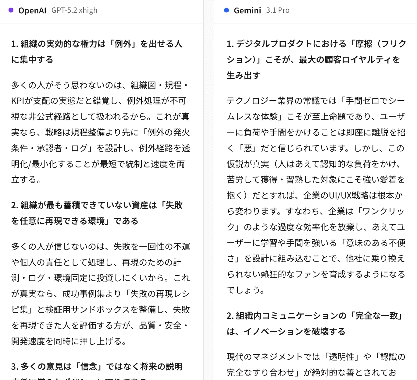 各モデルの出力の違いは、直接読み比べていただくのが最も伝わると思います。