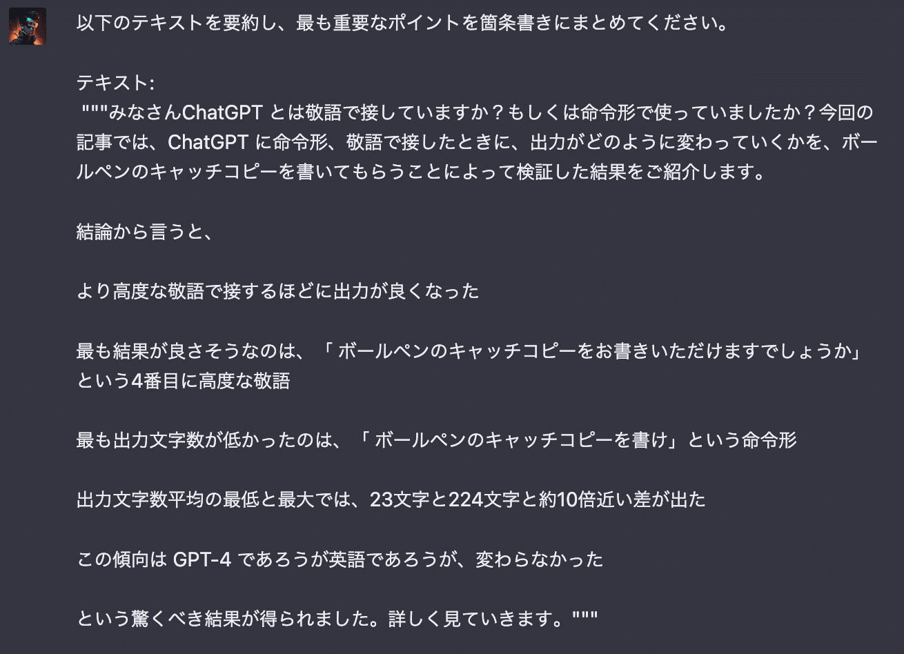 以下のテキストを要約し、最も重要なポイントを箇条書きにまとめてください。{text input here}