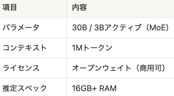 NVIDIAが開発したハイブリッドMoEモデル。30Bから3Bのみをアクティベートし、1Mトークンのコンテキストと4倍のスループットを実現しています。