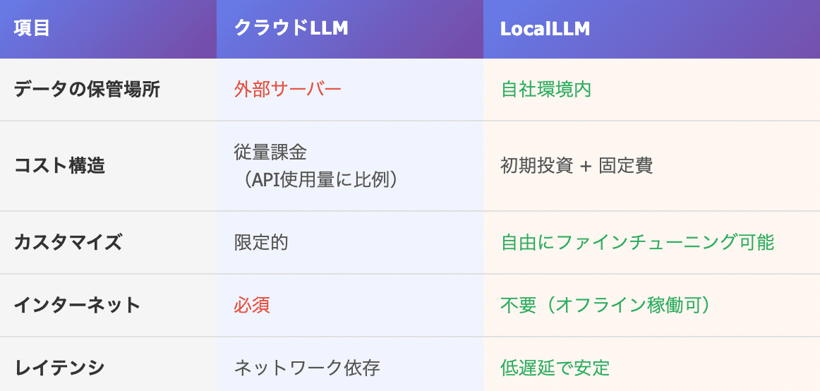 こうした流れの中で、LocalLLM(ローカルLLM)、クラウドではなく自社環境で動かす大規模言語モデル——に注目が集まっています。