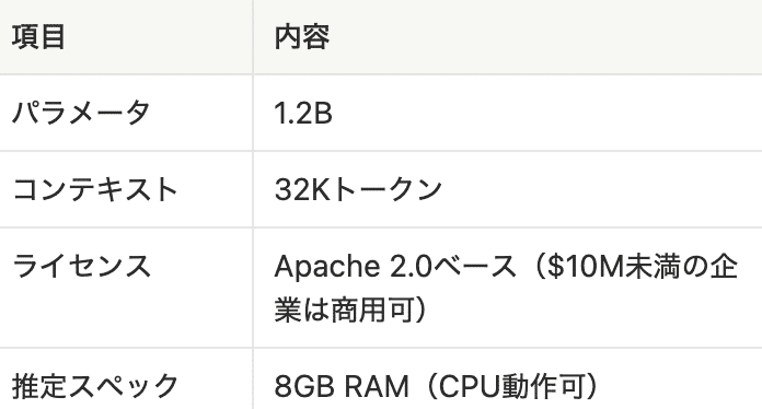 従来のTransformerとは異なるLiquid Foundation Modelアーキテクチャを採用。アテンションを約20%に抑え、CPU上でもQwen3比で2倍高速に動作します。