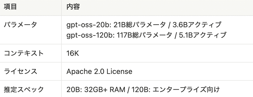 OpenAI初のオープンウェイトモデル。GPT-4レベルの推論性能とツール呼び出し機能を備えています。