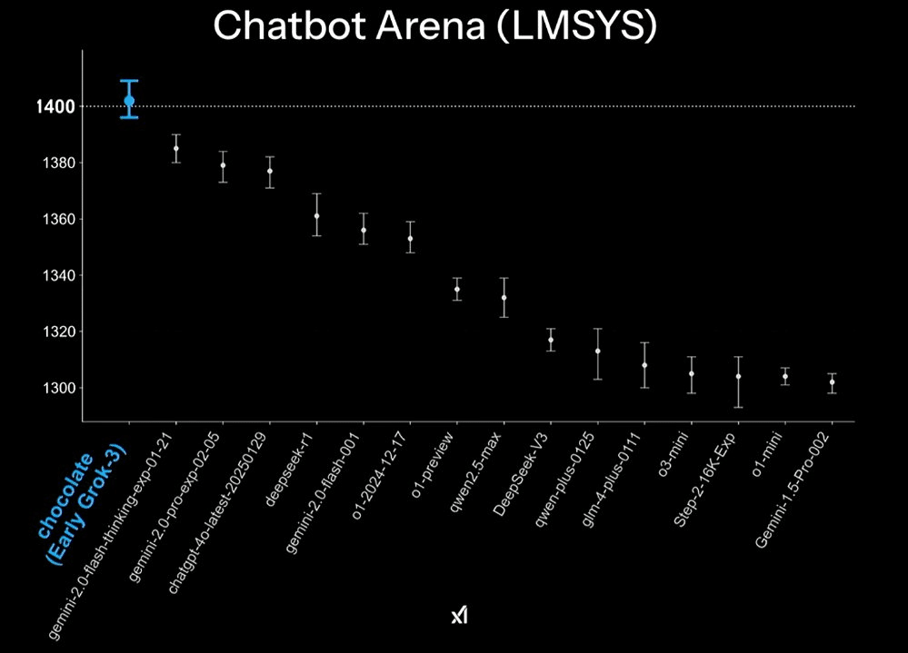 Grok 3が最高スコアで、軽量版Grok 3 miniも上位を維持