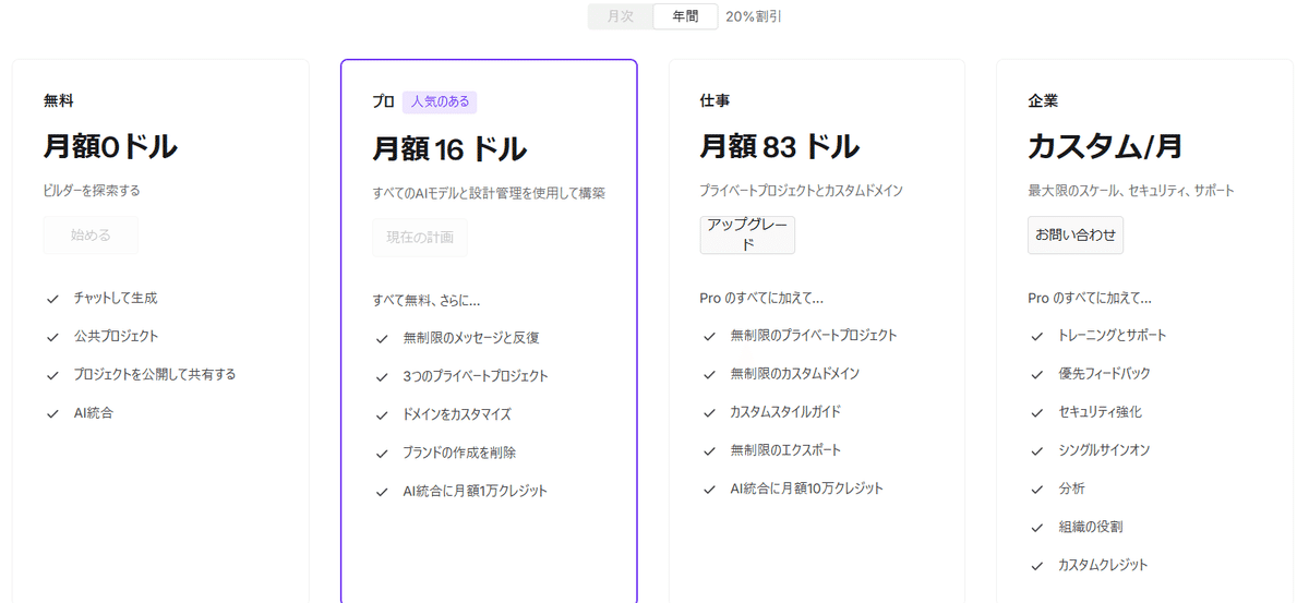 Proプラン以上にすればAIを無制限に使い放題のようです。また、アプリ内でAIを利用可能にする(AI統合を使う)場合クレジットが必要となりますがそちらも1万クレジット使うことが出来ます。