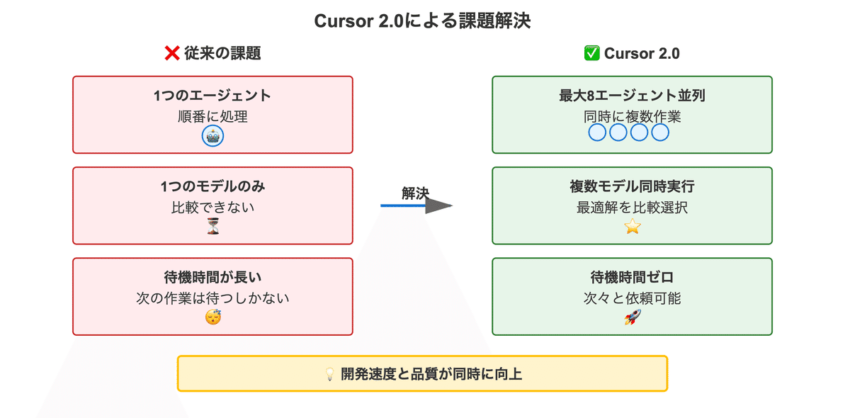 Cursor 2.0によって、こうした多くの課題が解決できるようになりました。