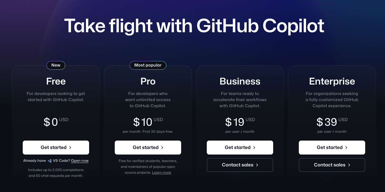 GitHub Copilotには以下の3つのプランがあります: