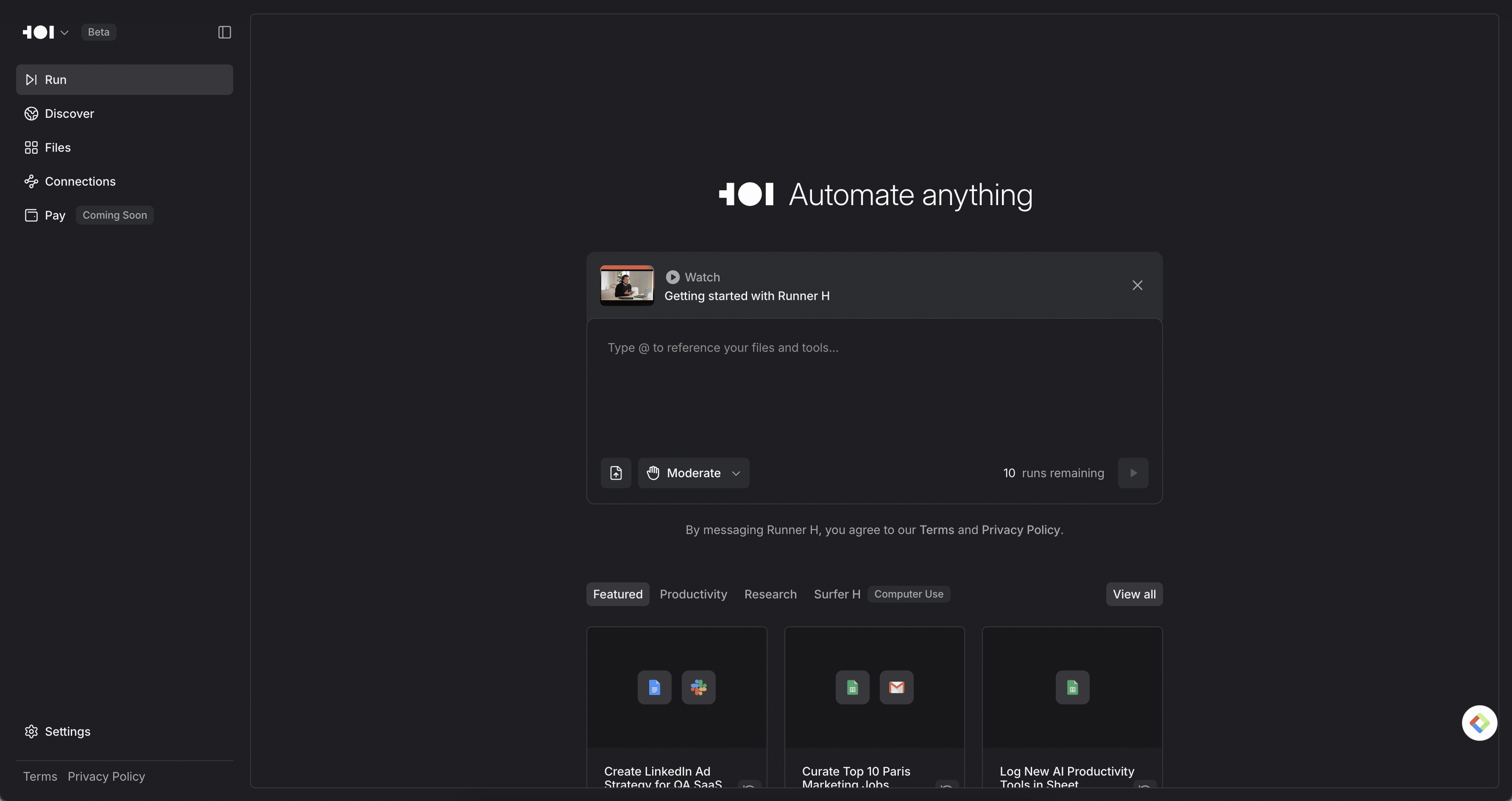 Runner Hは、AIスタートアップのH Companyが開発したAI Webエージェント。自然言語の指示だけで、Webサイト上の反復的な作業を自動化します。