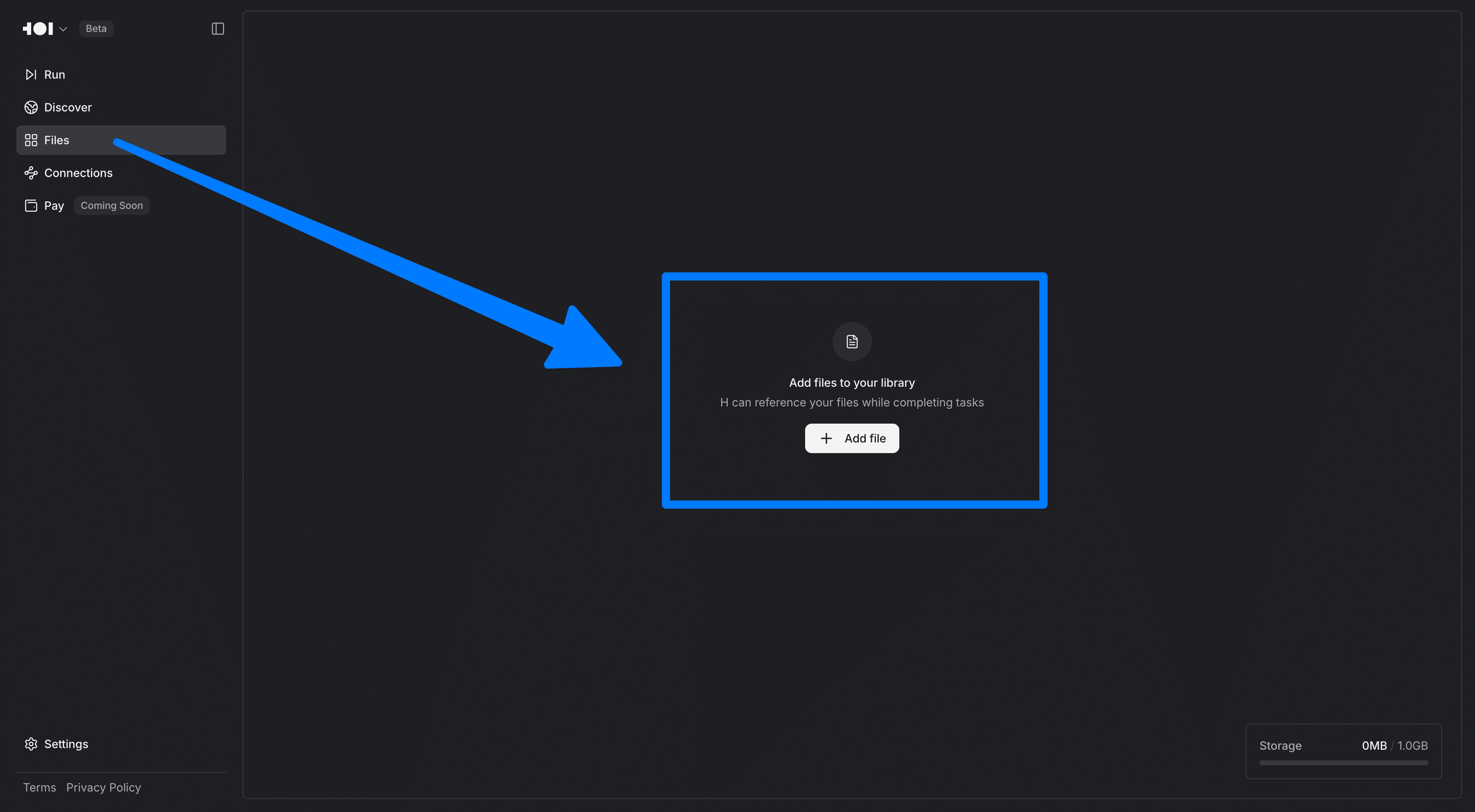 タスクで使うファイルを事前にアップロードしたり、実行結果として生成されたファイルを保存したりする場所です。