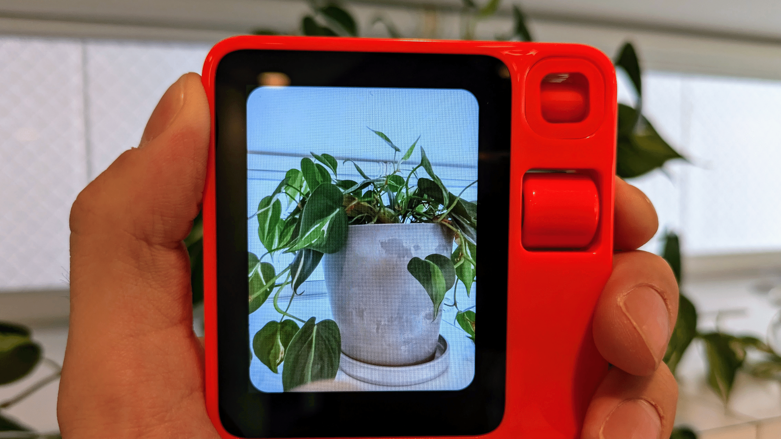 Rabbit r1 のカメラに観葉植物を写して、「この植物を識別してくれる?」と英語で聞いてみました。