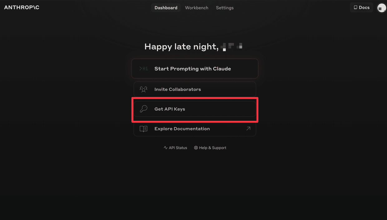 1.https://console.anthropic.com/dashboard から、Get API Keysをクリック。