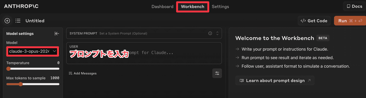 登録が完了したら、ワークベンチタブをクリックして "claude-3-opus-20240229" モデルを選択するだけで、すぐにOpusモデルの使用を開始できます。