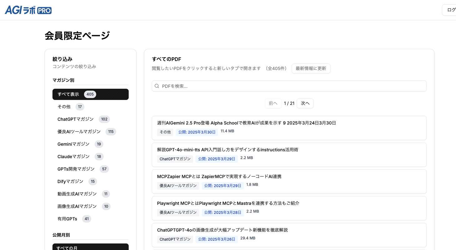 (1) AGIラボの全記事(過去記事含む)を一括閲覧可能