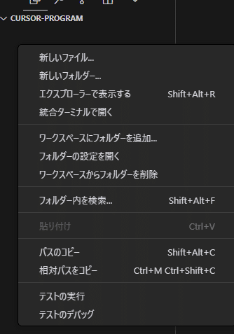 CURSOR-PROGRAMの隣の新しいファイルを作成をクリックするとファイルを作成できます。