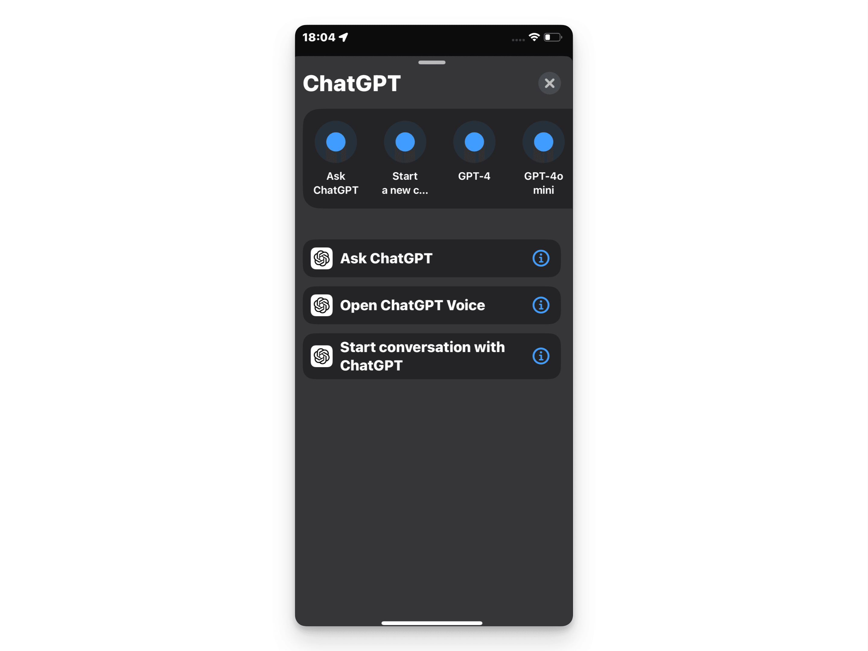 iOS 17以降では、ショートカットアプリ内でChatGPTと直接連携できるようになりました。