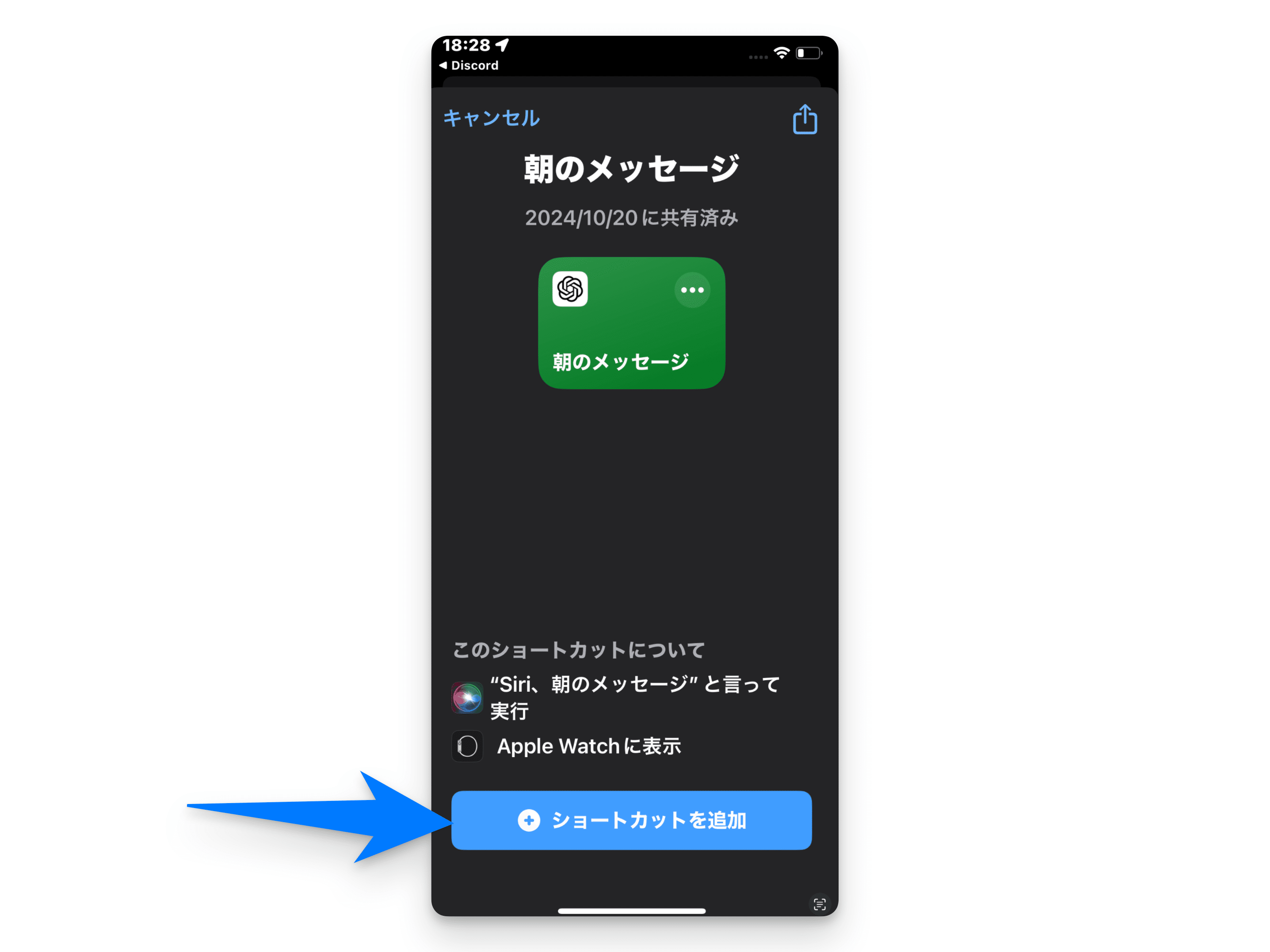 以下のリンクからショートカットをダウンロードし、iPhoneに追加します。